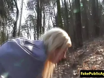 Hard blowjob from a spectacular blonde to another lover